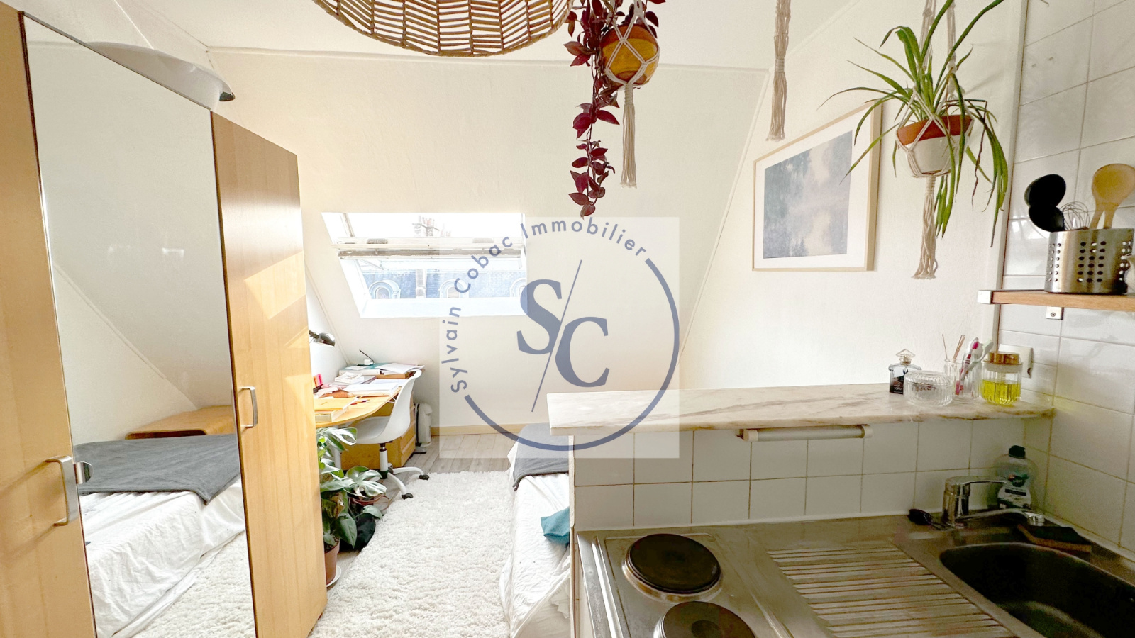 Avenue d’Eylau (75016), dans un superbe immeuble pierre de taille avec gardien, au 6ème et dernier étage par l’escalier de service, une studette de 11,29m2 certifiés loi Carrez et 14,77m2 au sol, composée d’une pièce principale avec une kitchenette aménagée et équipée, une cabine de douche et des toilettes traditionnels.