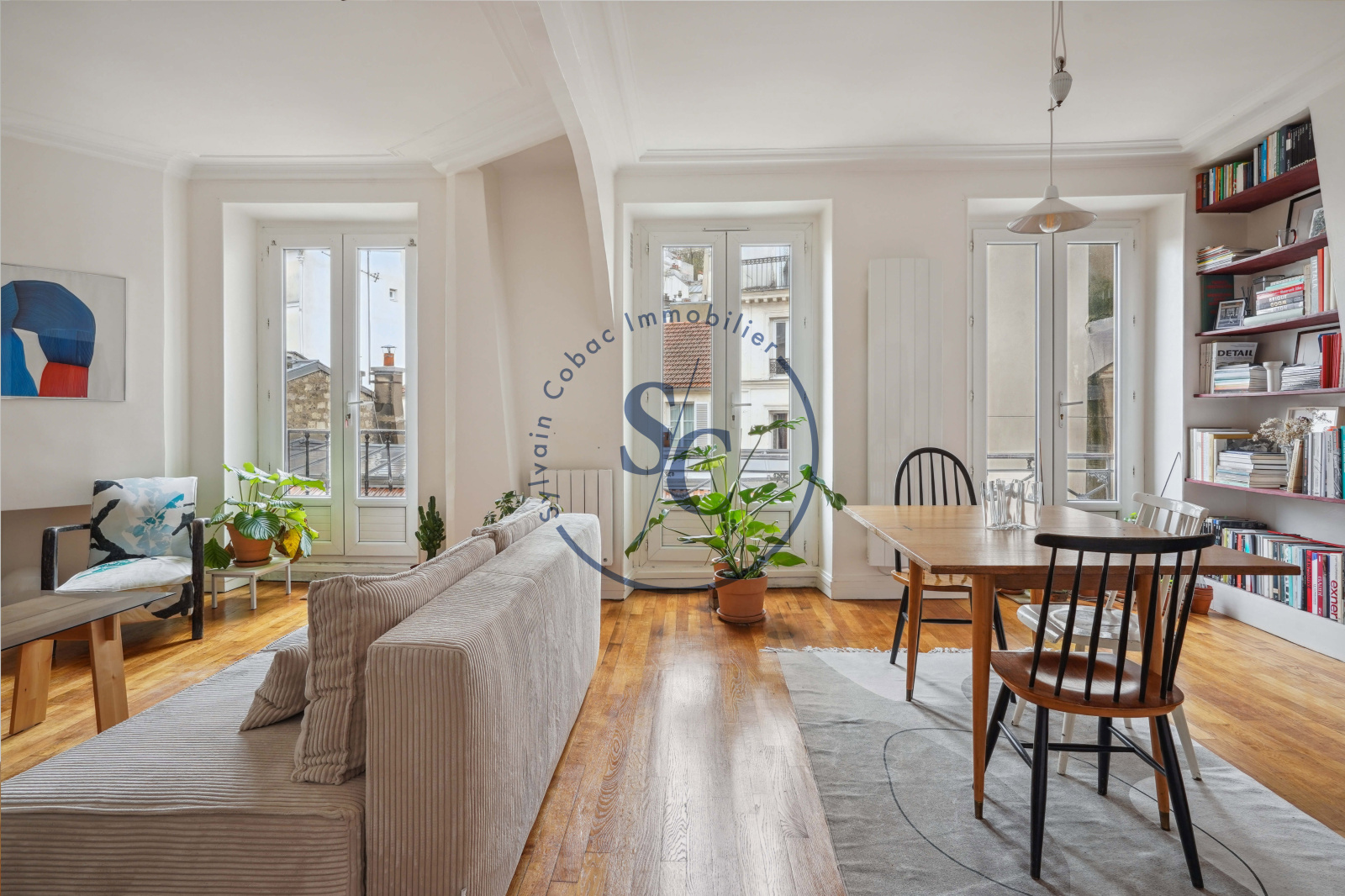 -Beau volume de séjour/salle à manger de près de 30m2 avec balcon